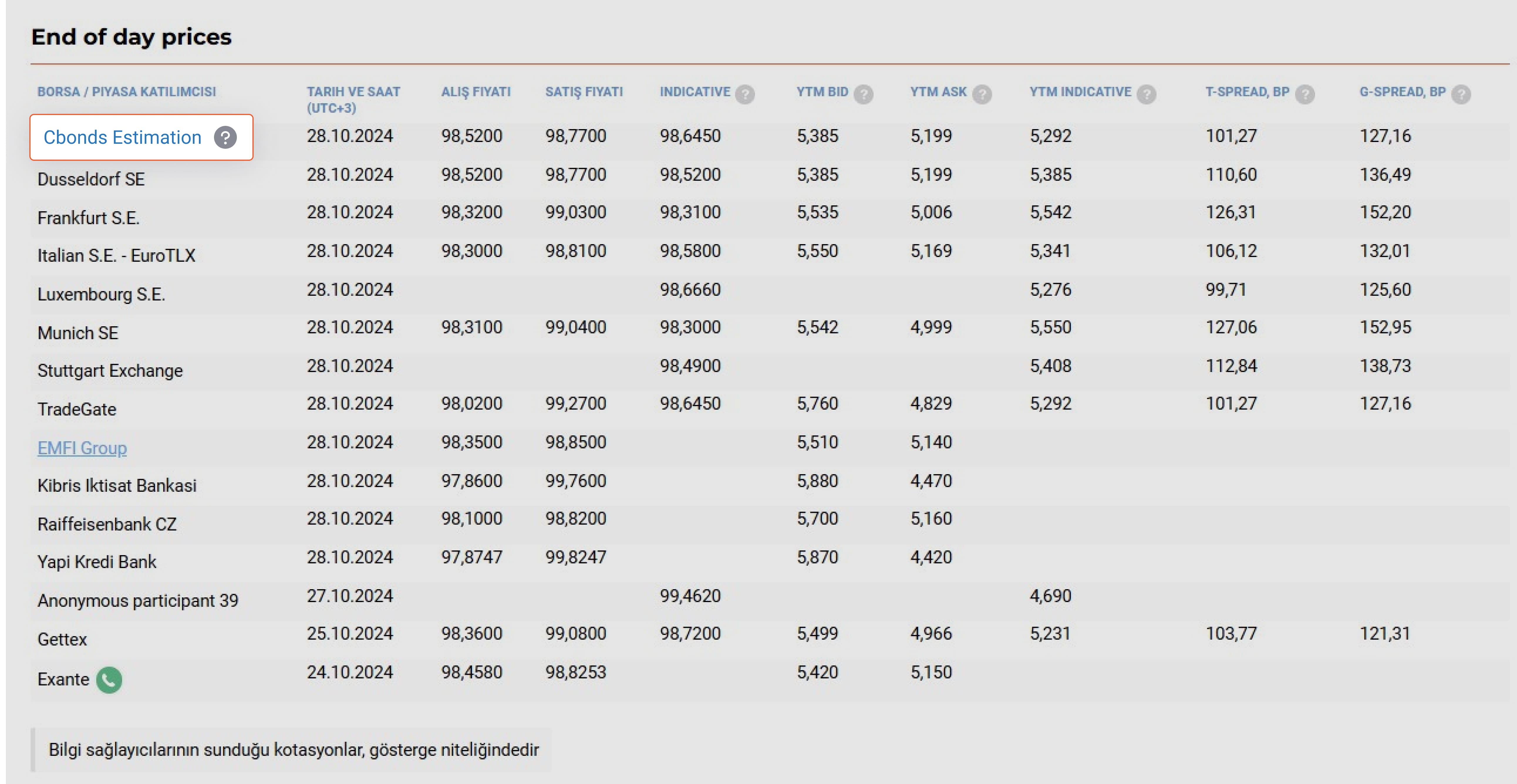 Endikatif kotasyonların kullanım alanı, tahvil ve eurotahvillerin gerçeğe uygun değerinin belirlenmesidir.